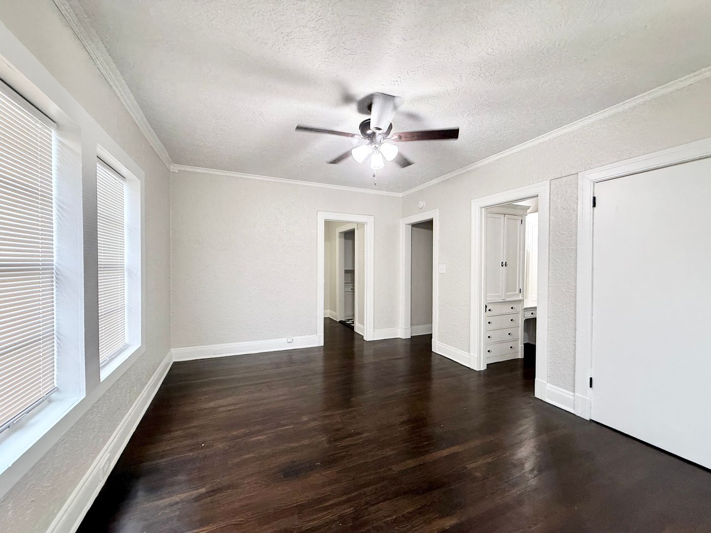 Cute upstairs studio in vintage 1920's complex, recent paint, lots of windows, updated fixtures, vaulted ceilings, beautifully restored oak hardwoods, functional original built-ins, separate dining area, on-site laundry, off-street parking available (1st come / 1st serve), call 713-622-4805, ref #F204