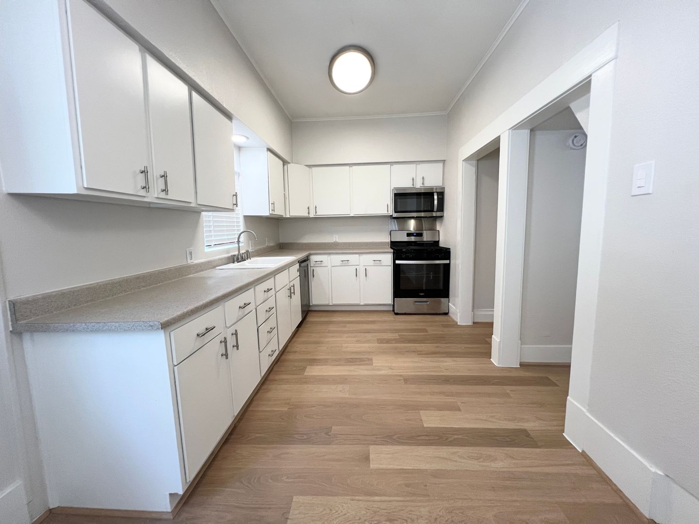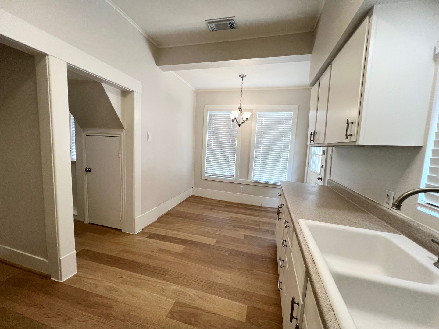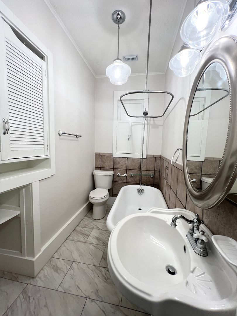 Unique Boutique 3/2/2 Craftsman Bungalow in Angleton Near the Court House, recent interior paint, 2 bedrooms / 1 bath downstairs, loft bedroom and 2nd bath upstairs, white oak laminate hardwoods w/ new carpet in bedrooms, high ceilings, 2” blinds, updated fixtures and hardware, elegant mock fireplace, lots of windows, central a/c and heat, recent stainless steel appliances including microwave, gas range, and dishwasher, washer / dryer connections, fenced backyard w/ deck, ** 630 or higher credit score - call 713-622-4805, ref #MRT21